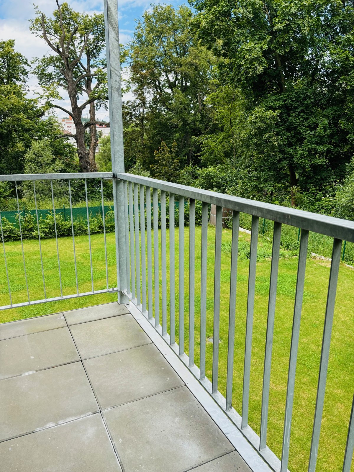 lodžie 3,6 m2 s hezkým výhledem do parku, nacházející se ve