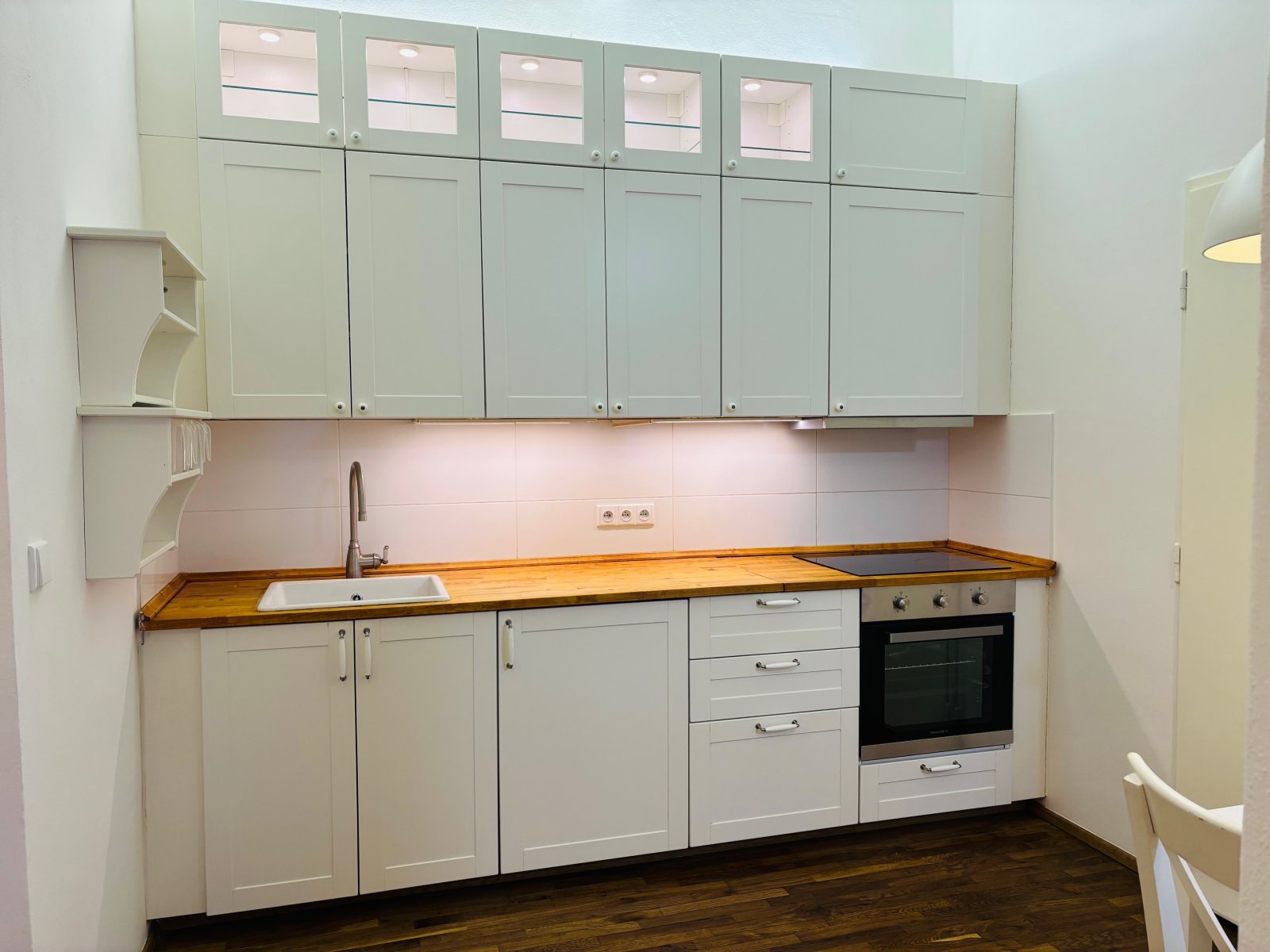 linka s vestavěnými spotřebiči (sklokeramická deska, trouba, digestoř,