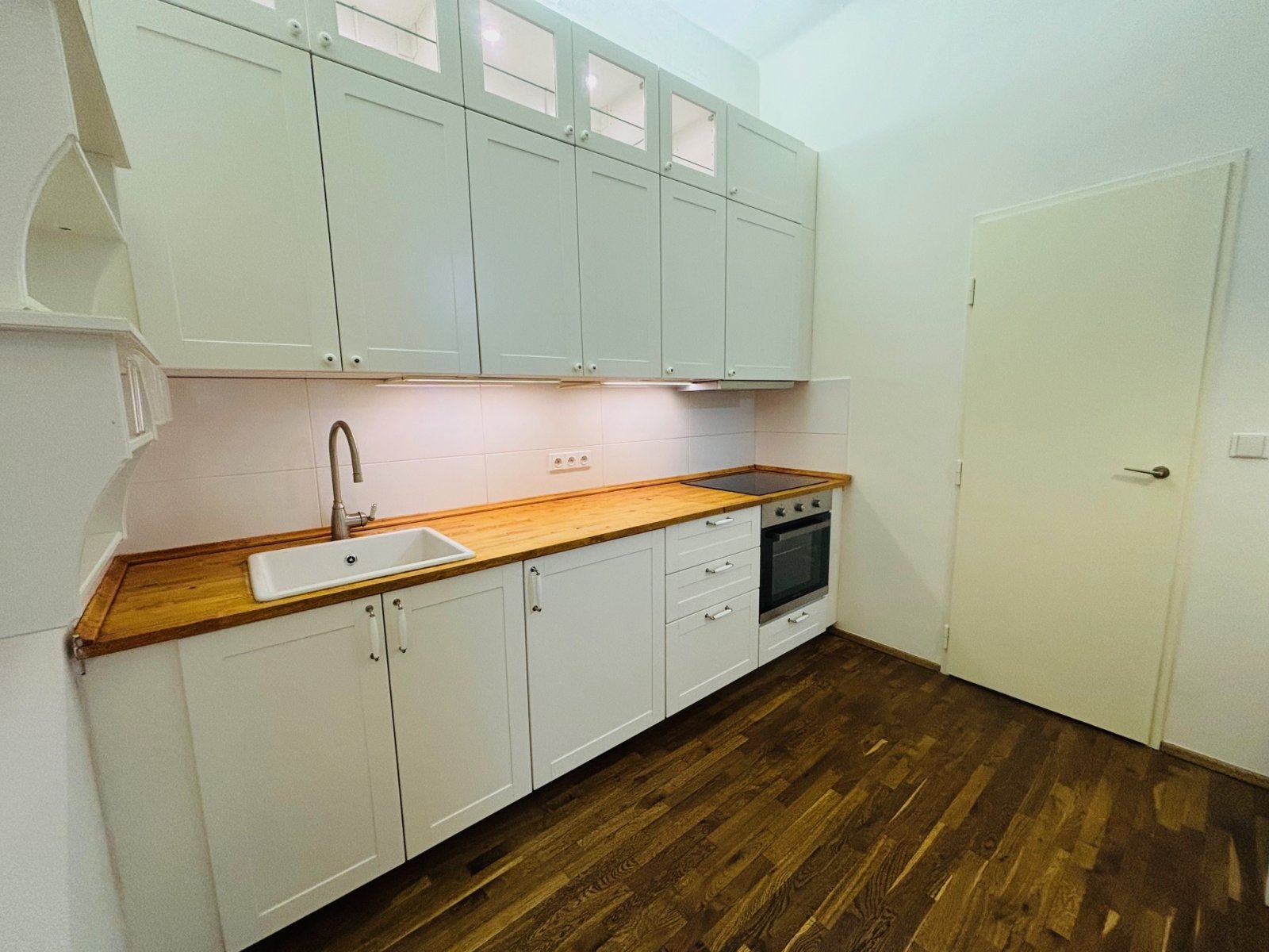 Byt je po rekonstrukci a nabízí se částečně zařízený – kuchyňská
