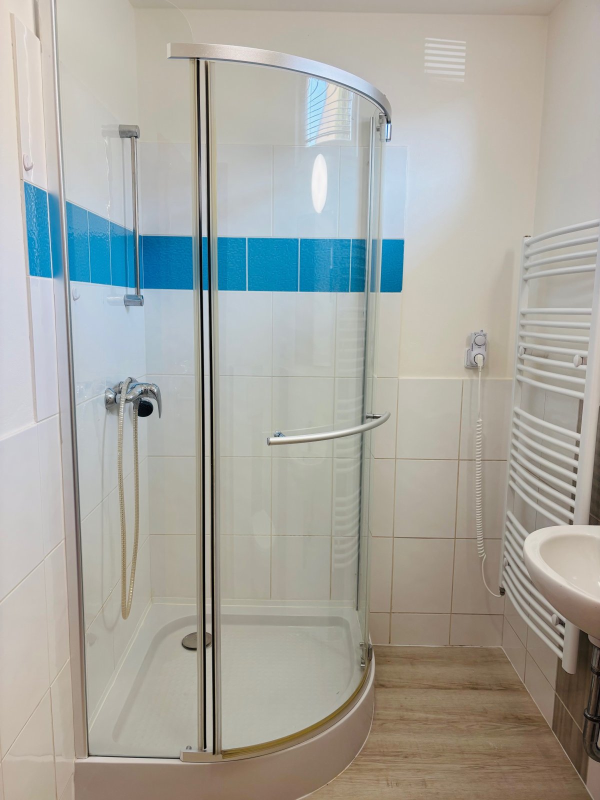 Na podlaze plovoucí lamino a dlažba.