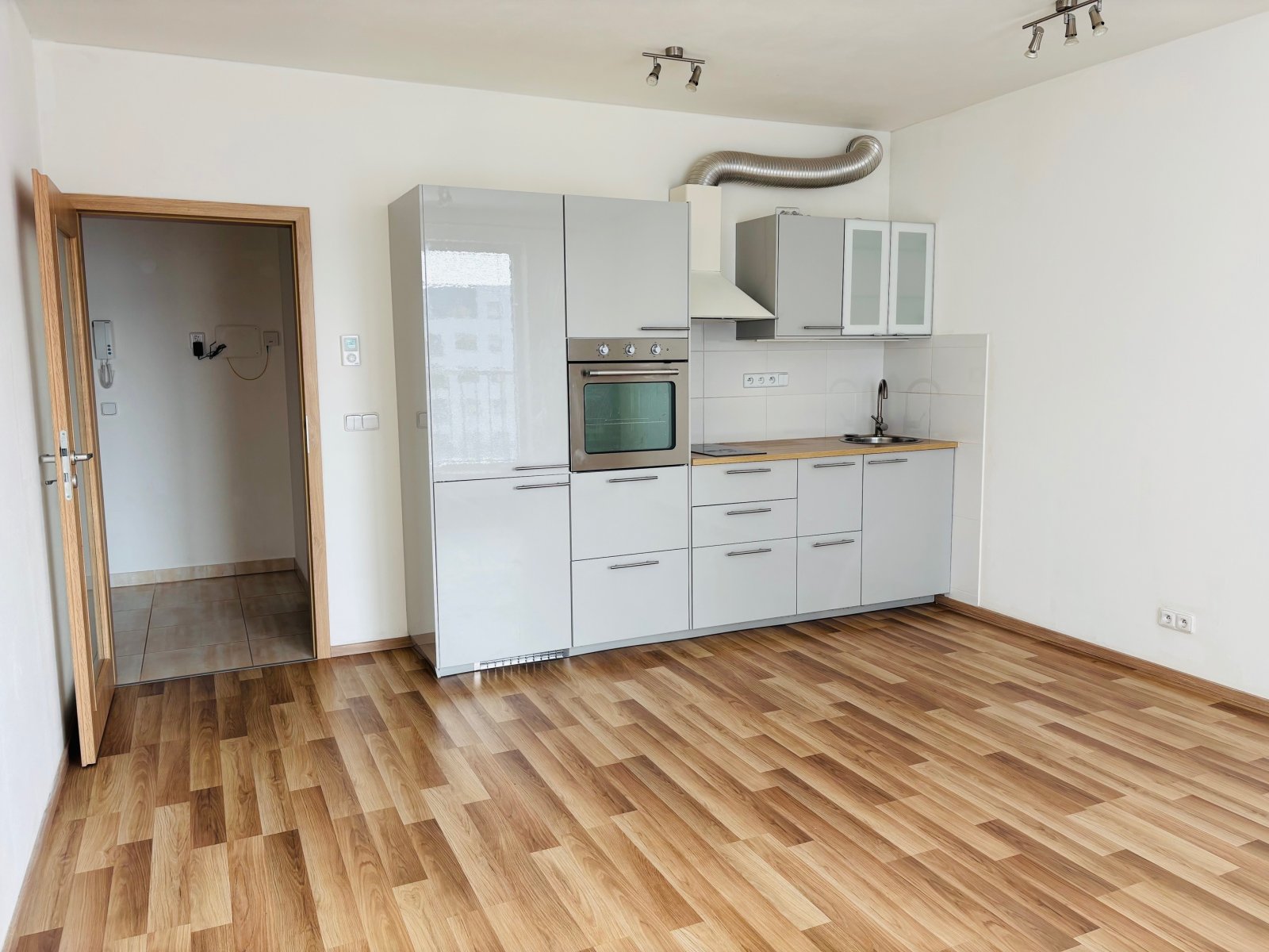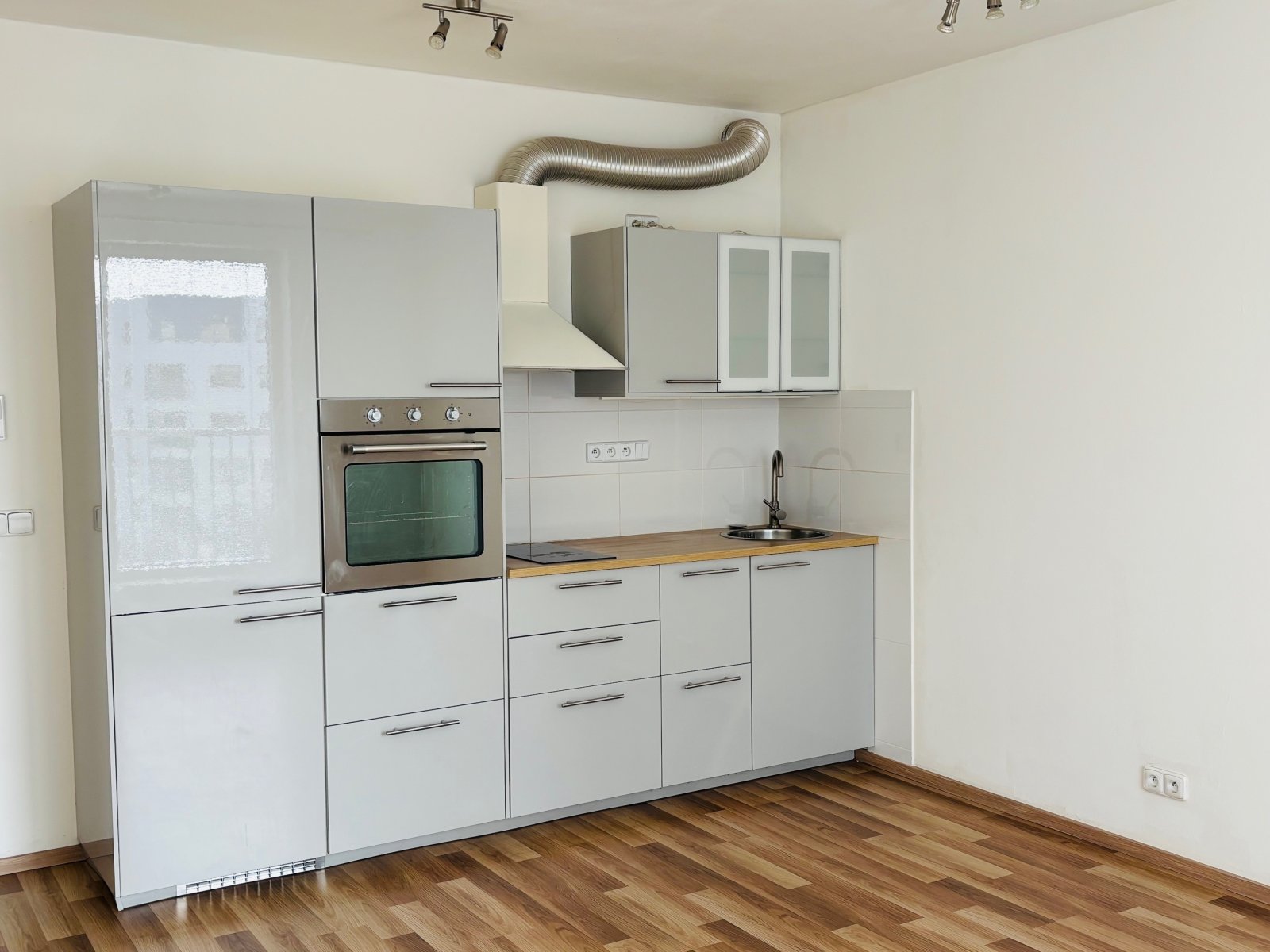 Byt se nabízí částečně zařízený – kuchyňská linka s vestavěnými
