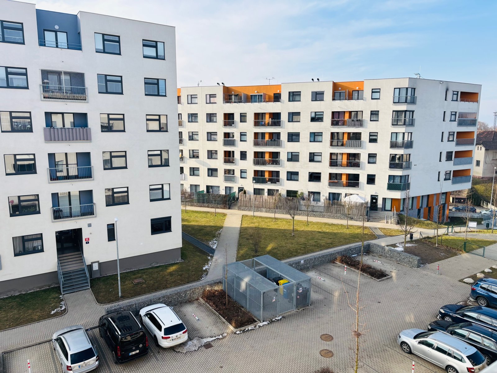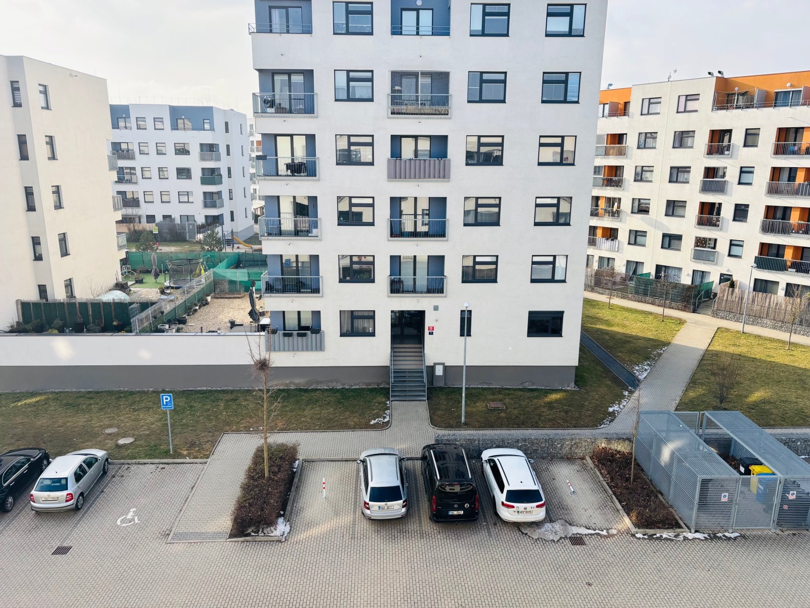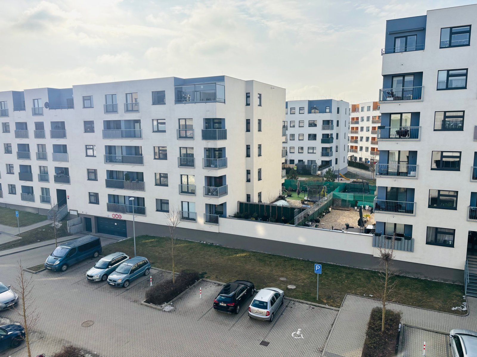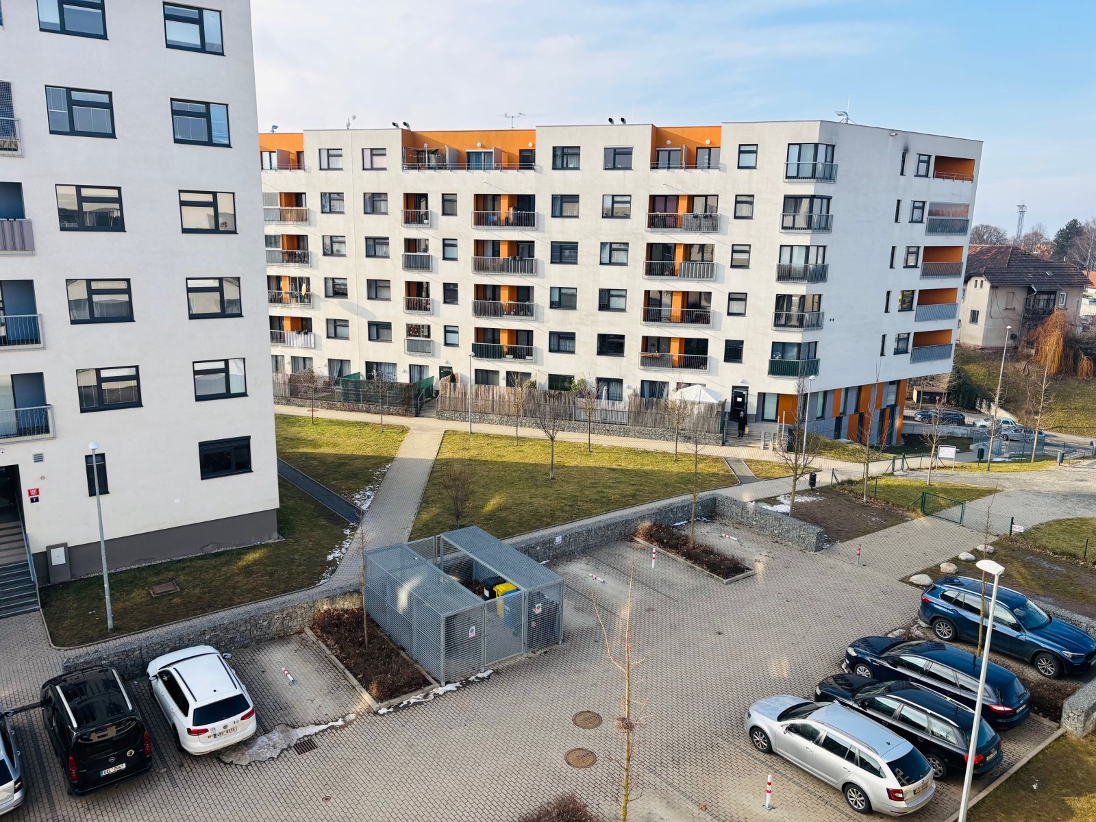pětipatrové novostavby s výtahem.