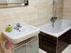 lednice s mrazákem), v koupelně vana, koupelnová skříňka, zrcadlo a WC,